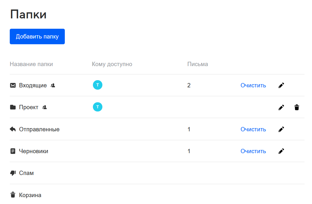 Если вам предоставлен доступ к папкам в других ящиках, вы можете выбрать этот ящик и работать с папками в зависимости от вашего уровня доступа.