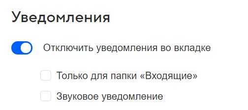 Только для папки Входящие | Установите галочку, чтобы уведомления были только о новых письмах во Входящих. Уберите, чтобы уведомления приходили из всех папок. |