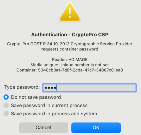 Если пароль от контейнера не был сохранен, то введите его в открывшемся окне и нажмите ОК.