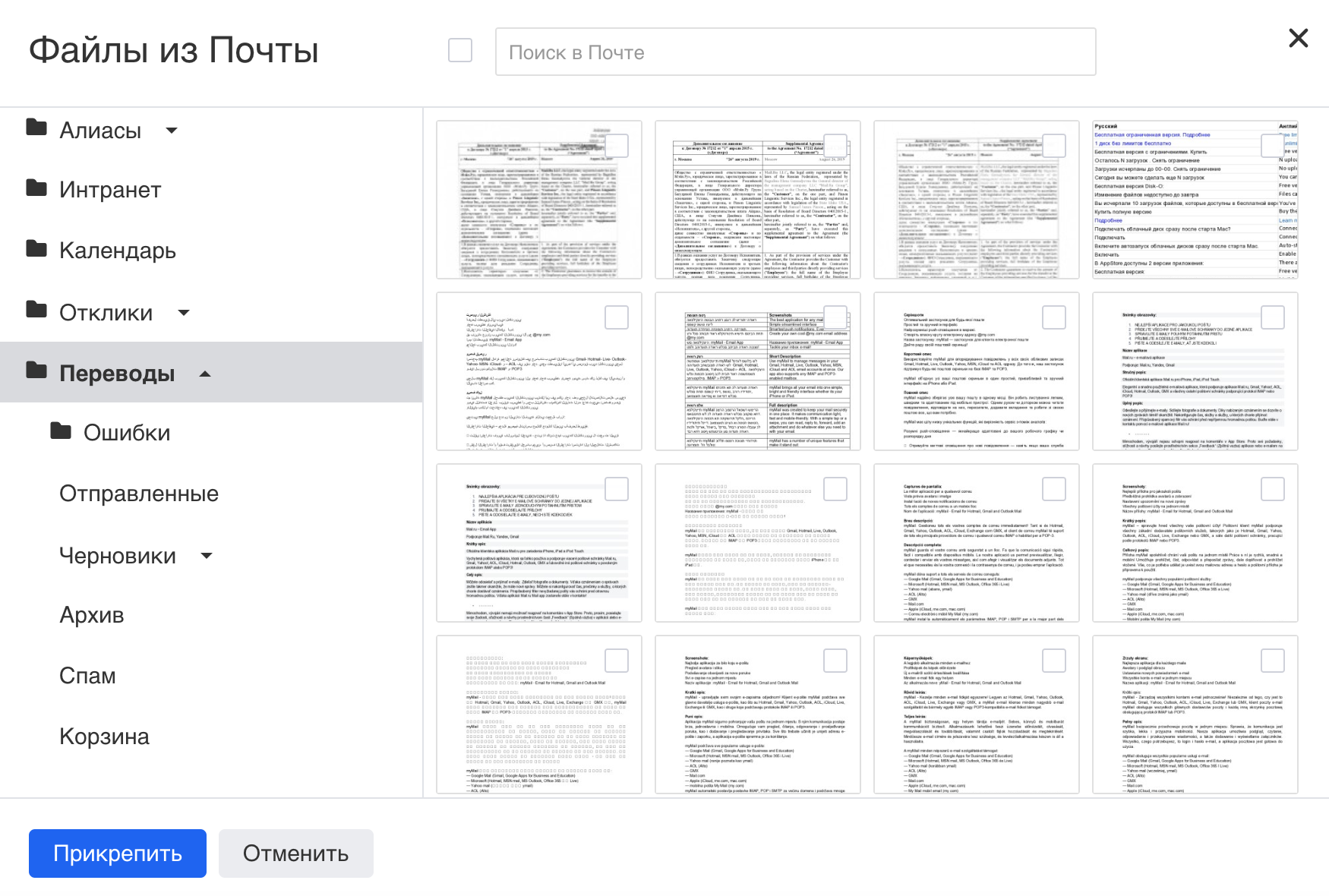 Кроме файлов с компьютера вы можете прикреплять к письму те файлы, которые уже находятся в вашем почтовом ящике. Для этого: