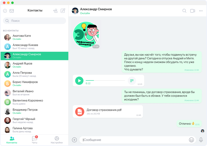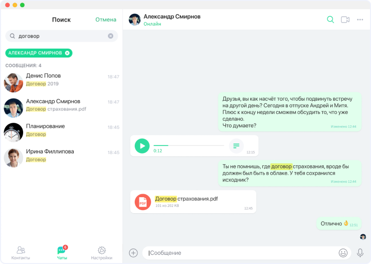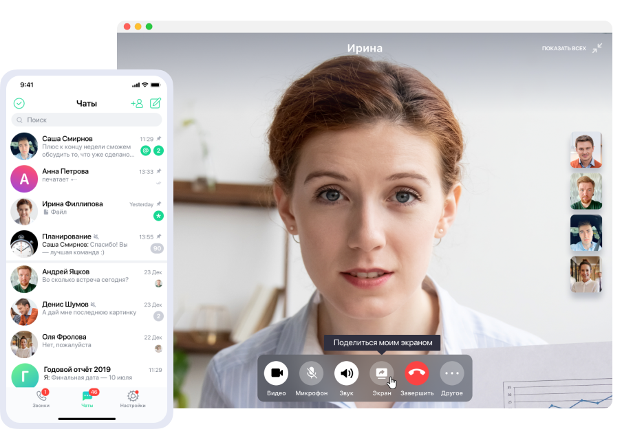 Общайтесь в мессенджере с компьютера, телефона или в удобной браузерной версии. Где бы вы ни были — вы сможете быстро решать рабочие вопросы